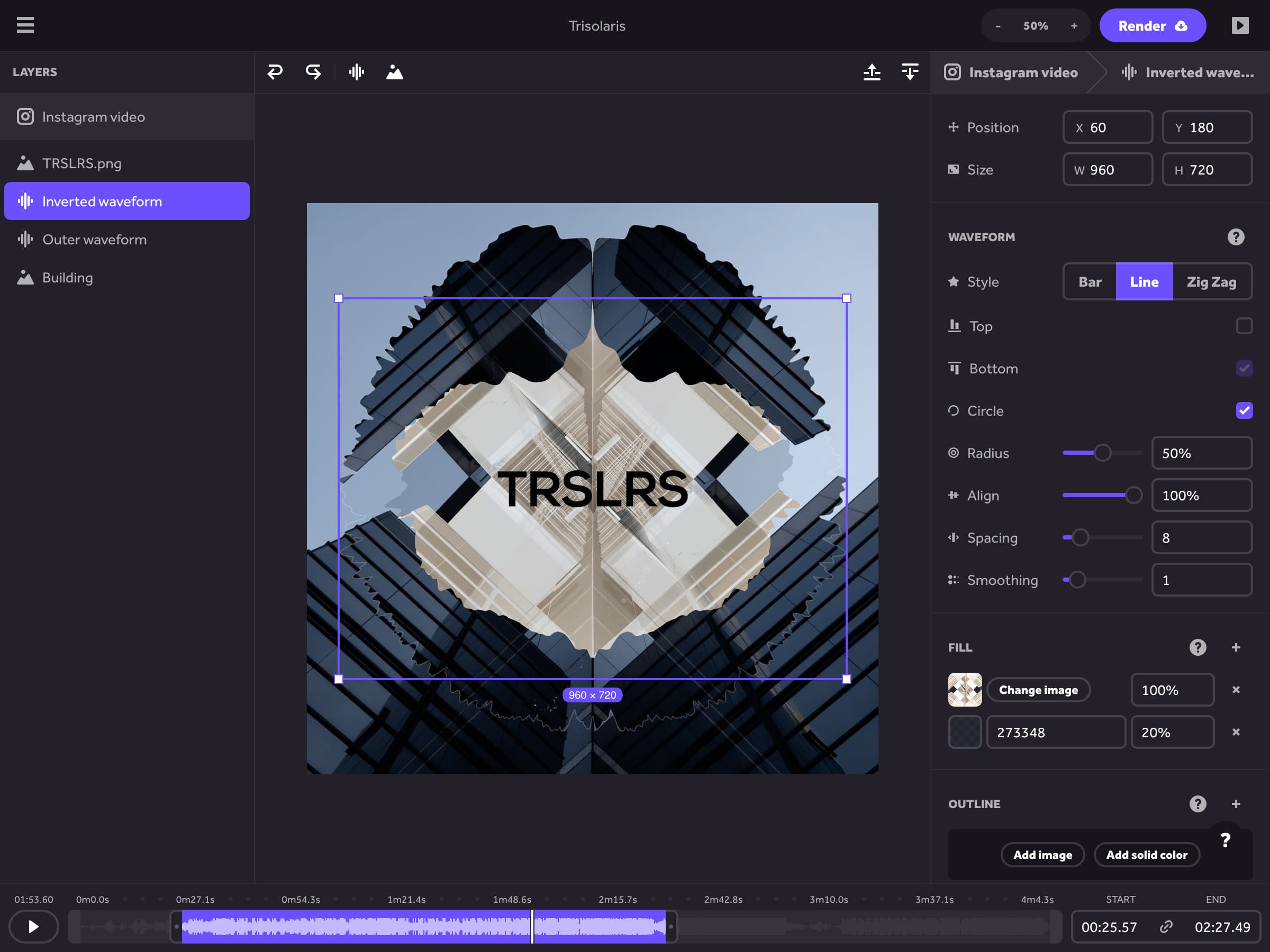 Most social networks won’t let you post music alone. SongRender is the easiest way to make music visualizer videos for social media.